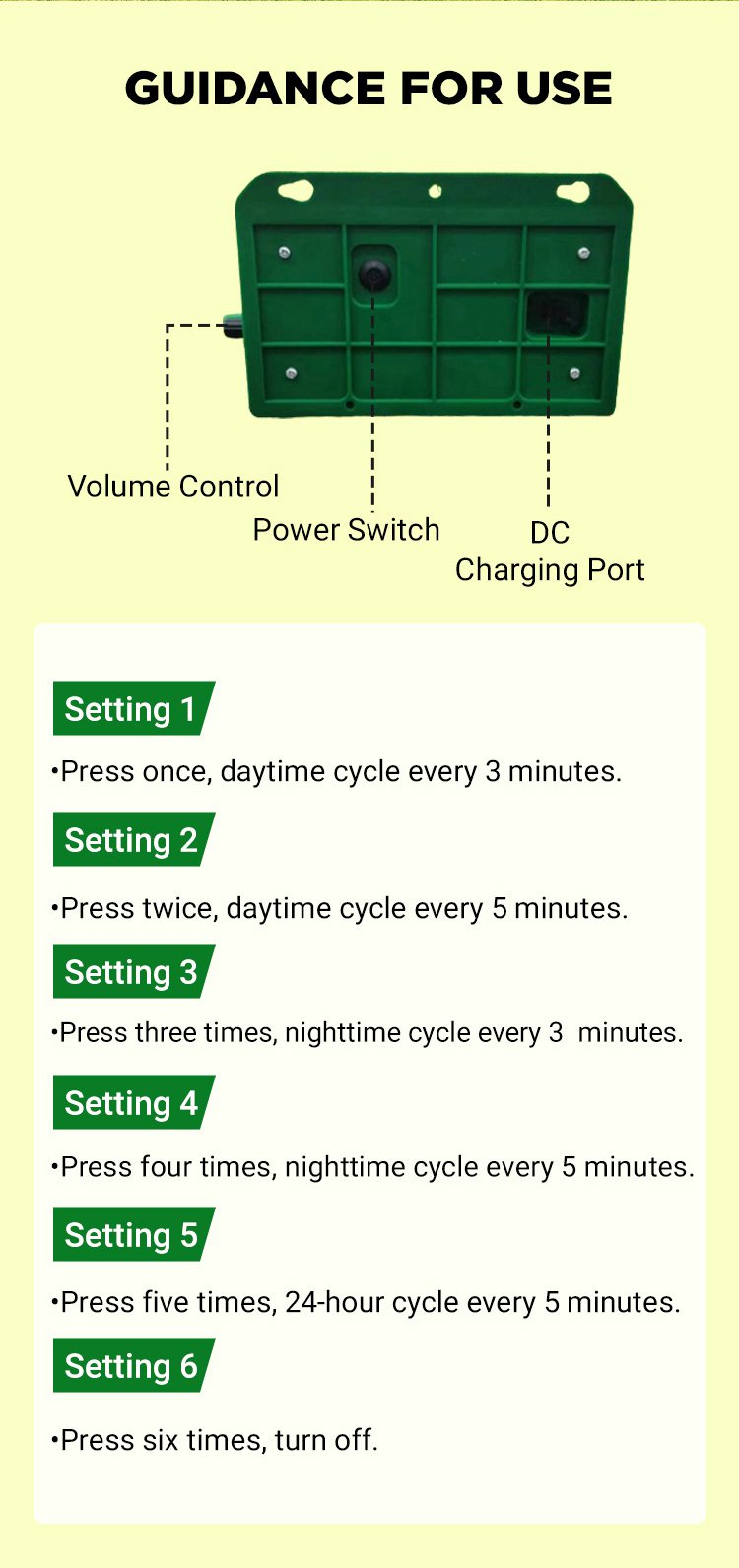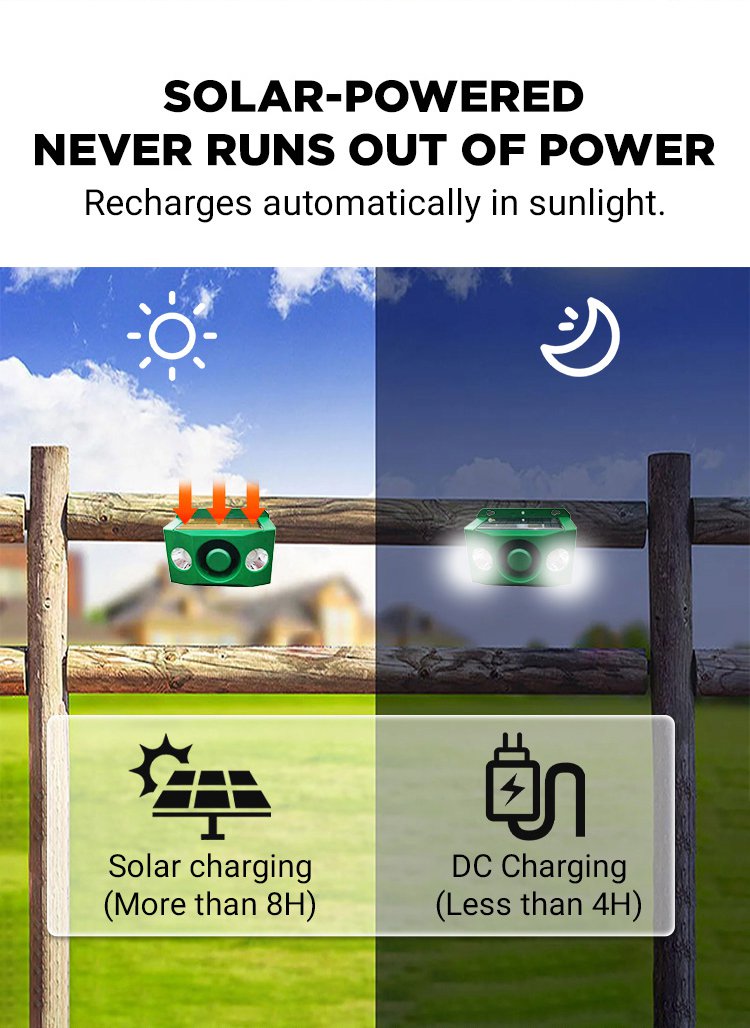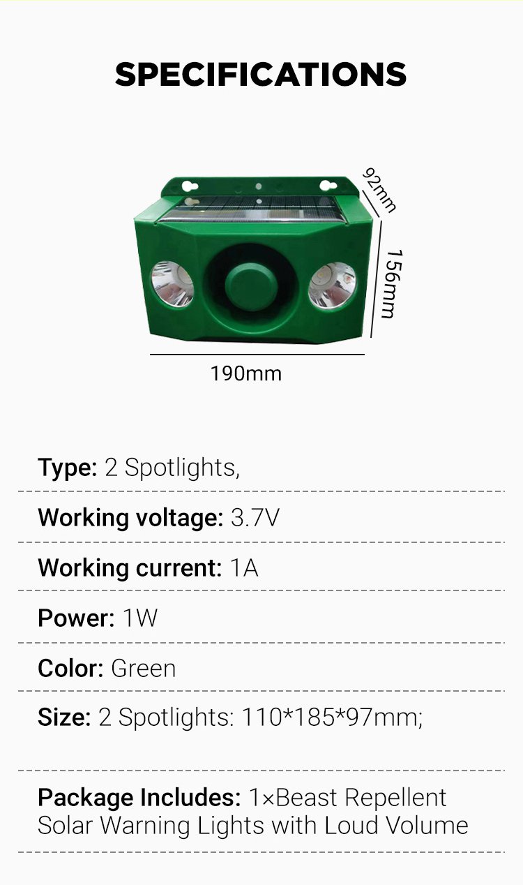 Solar powered flashing loud volume repellent warning light